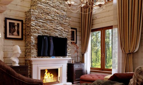 **Шторы:** Шторы синего цвета или с синим узором создадут единую цветовую палитру и внесут уют в гостиную.