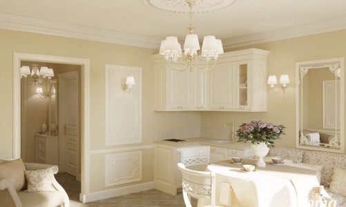 — **Основное освещение:** Хрустальные люстры или встраиваемые светильники обеспечивают яркий рассеянный свет, освещая всю комнату.