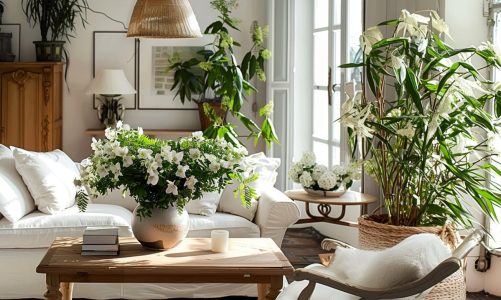— **Растения:** Зеленые растения добавляют жизни и свежести в фиолетовую гостиную.