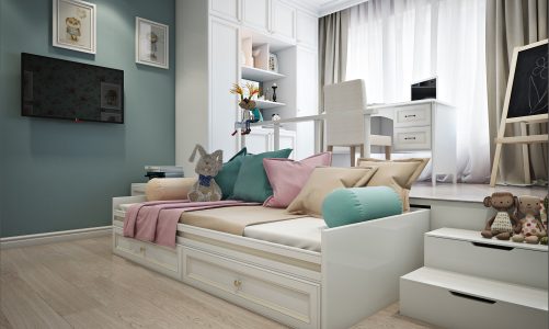 * **Многофункциональный туалетный столик с ящиками:** Туалетный столик с встроенными ящиками для хранения косметики и украшений идеально подходит для организации и функциональности.