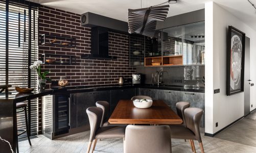 — **Столовая с подиумом:** Поднимите столовую зону на подиум, чтобы создать более формальную атмосферу. Добавьте люстру или другие светильники, чтобы подчеркнуть эту зону.