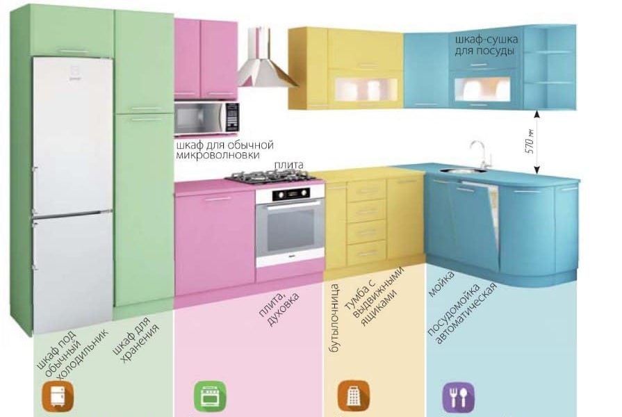 Основные функциональные зоны кухни