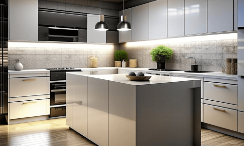 * **Успокаивающее действие:** Серый цвет создает успокаивающую и расслабляющую атмосферу, делая вашу кухню не только функциональной, но и комфортной для отдыха.