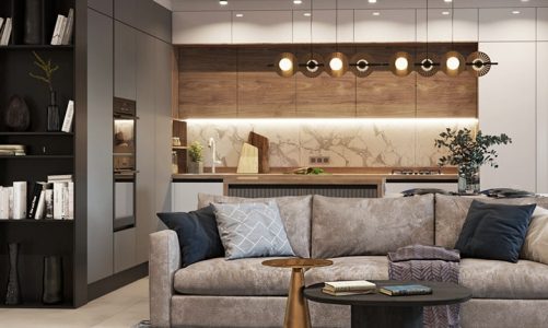 * Рассмотрите добавление декора, такого как открытые полки или кухонный остров.