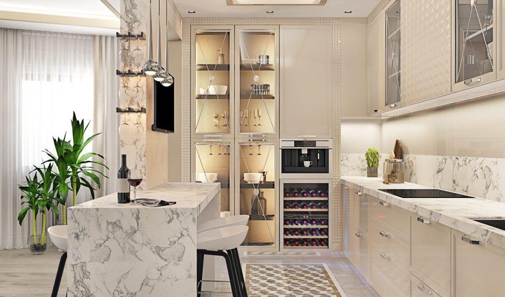 - Встроенная техника. Встроенная техника, такая как духовка, посудомоечная машина и холодильник, может сэкономить место и сделать кухню более стильной.