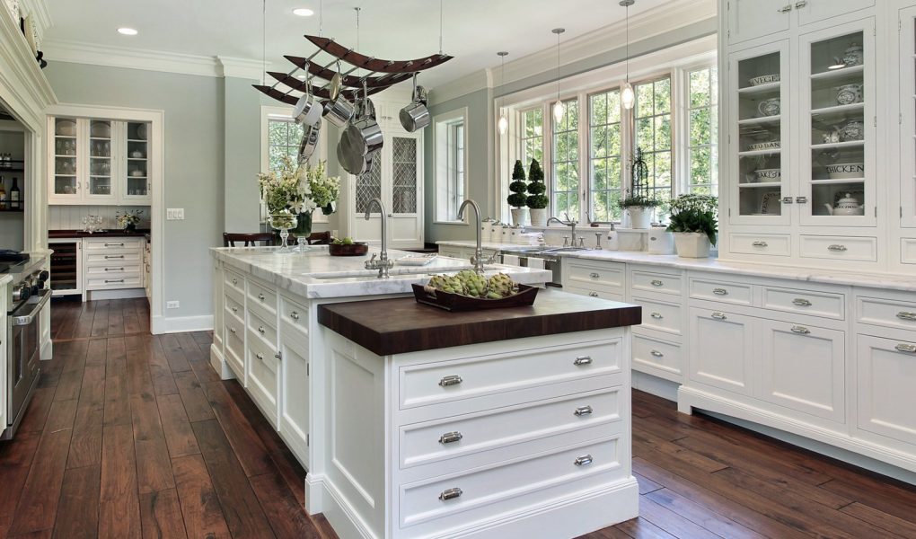 Напольное покрытие для кухни в американском стиле должно быть прочным и легко чистящимся. Популярные варианты включают плитку, ламинат и виниловые покрытия.