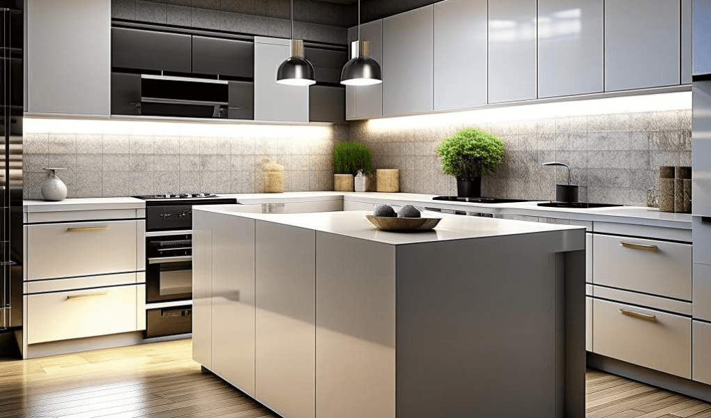 * **Фурнитура:** Качественная и стильная фурнитура, такая как выдвижные системы, ручки и светильники, может увеличить стоимость проекта.