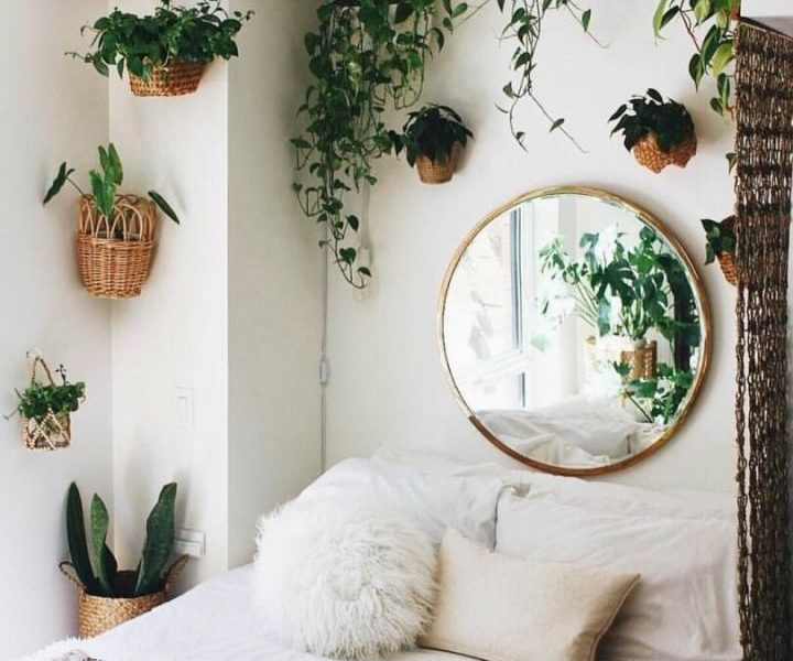 * **Потолок:** Подвесные растения могут добавить вертикальный интерес в спальню. Повесьте растения на макраме или кашпо и разместите их над кроватью или в углу комнаты.