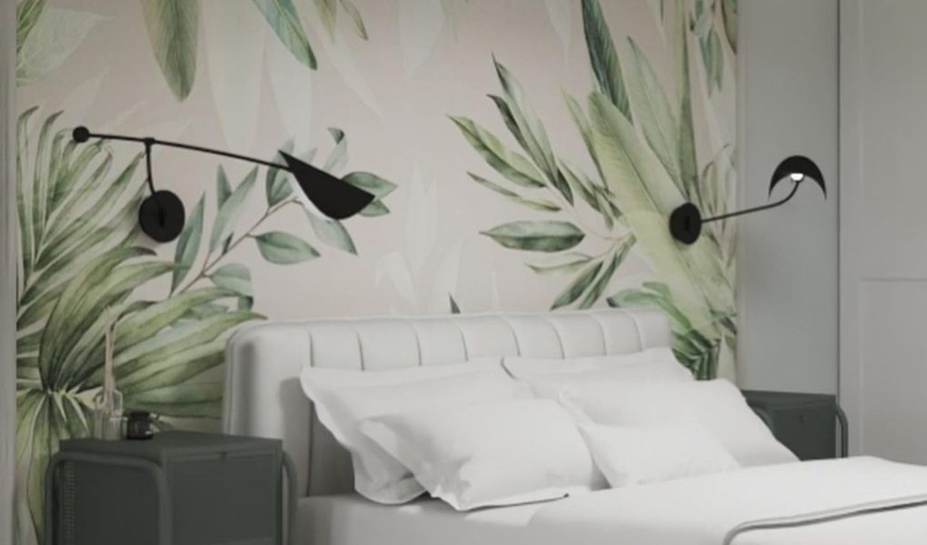 ## Дизайн спальни с обоями с листьями: гармония природы в интерьере