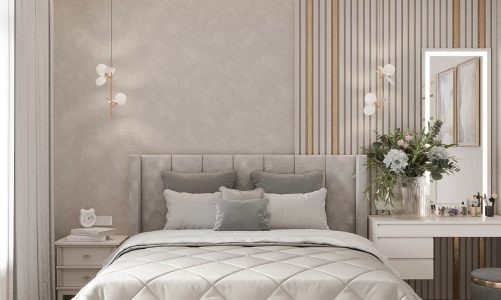 Освещение в спальне с полумансардой должно быть многоуровневым. Основной источник света — это люстра или потолочный светильник. Дополнительное освещение можно создать с помощью бра, торшеров или настенных светильников.