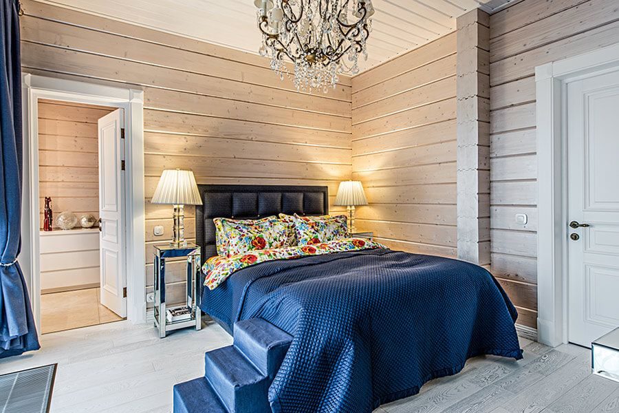 В спальне рубленного дома должно быть предусмотрено несколько источников света. Общее освещение обеспечит люстра или потолочные светильники. Для создания уютной атмосферы можно использовать бра или настольные лампы. Также стоит позаботиться о подсветке рабочей зоны, если она имеется в спальне.