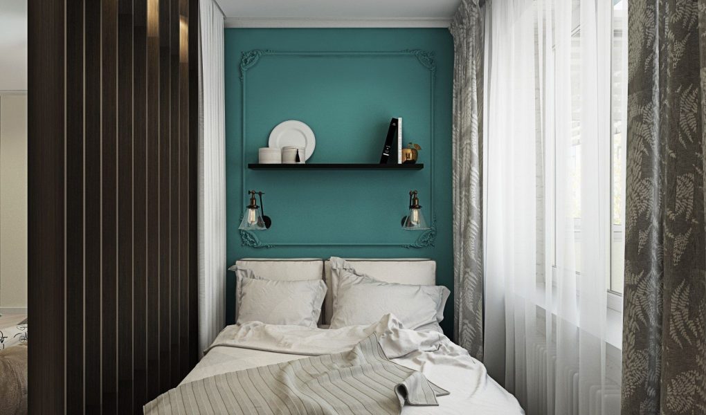 В узкой спальне следует максимально использовать вертикальное пространство. Повесьте полки или установите стеллажи для хранения книг, документов и других предметов. Вы также можете использовать настенные светильники, чтобы освободить место на прикроватных тумбочках.