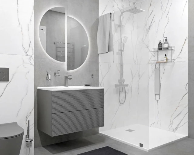 Следующим этапом является создание 3D-визуализации дизайн-проекта. Заказчик может увидеть, как будет выглядеть его ванная комната после ремонта. Дизайнер подбирает материалы отделки, сантехнику и мебель в соответствии с выбранной концепцией.