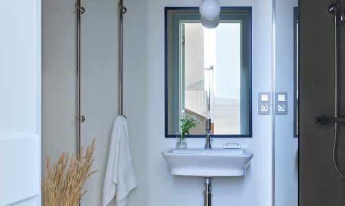 **5. Зелень:** Растения привносят в ванную комнату нотку природы и свежести. Выбирайте растения, устойчивые к влаге, например, папоротники, суккуленты или бамбук.