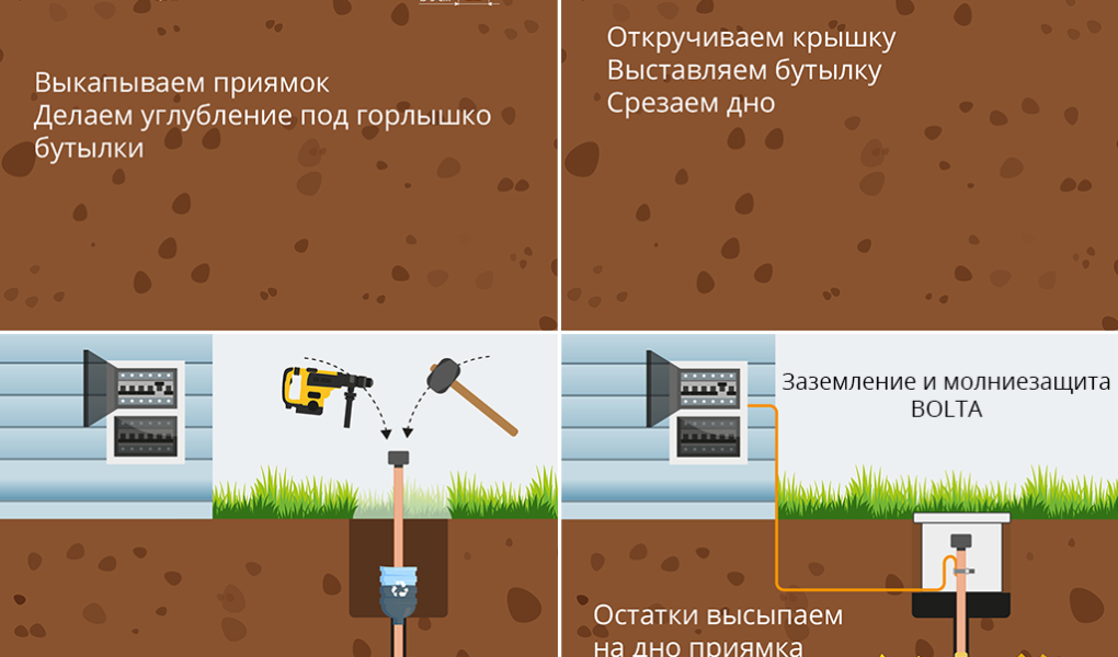 Монтаж заземления с одним стержнем выполняется в несколько этапов: