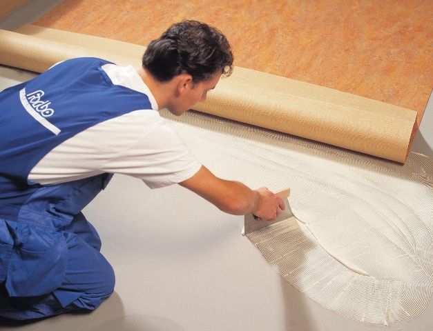 * **Выберите соответствующий клей:** Используйте клей, специально предназначенный для приклеивания линолеума к основанию.