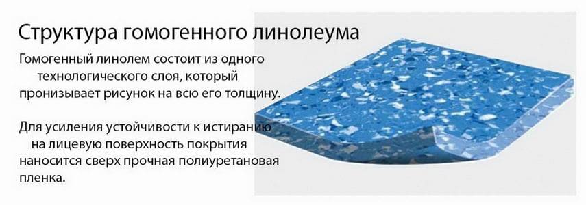 Гомогенный линолеум изготавливается из прочных материалов, таких как: