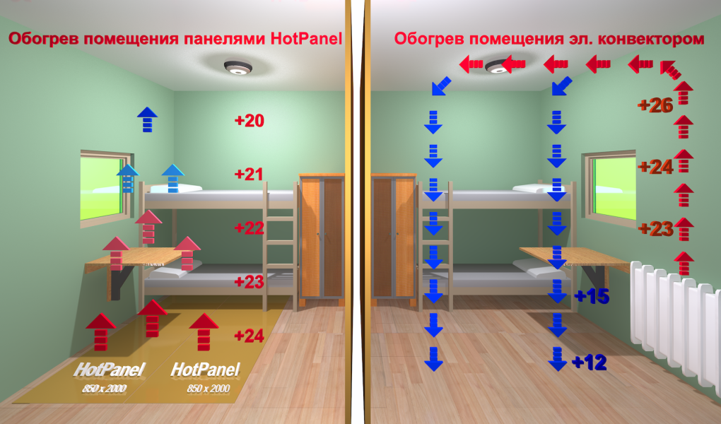 — **Скорость нагрева:** Отопление потолком нагревает помещение быстрее, чем отопление полом.