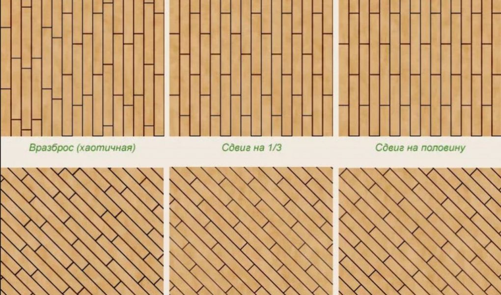 4. Продолжайте укладывать ряды паркета, сдвигая каждую последующую планку наполовину относительно предыдущей.