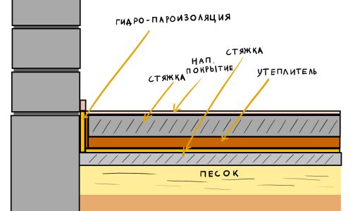* **Мокрая стяжка** – самый распространенный вариант, изготавливается из цементно-песчаного раствора.