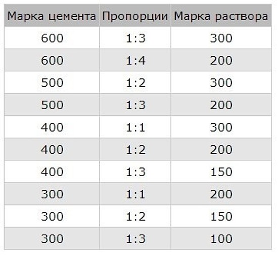 * **Цемент марки М400 или М500: песок = 1:3** (для обычных условий эксплуатации)