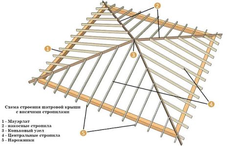 Допустим, у вас есть дом размерами 10 м в длину и 8 м в ширину, высота ската 5 м, а глубина вальмы 2 м.