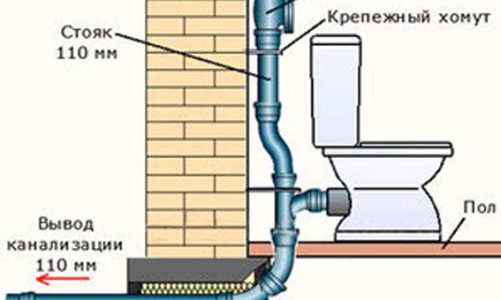 — **Уклон труб**. Для обеспечения самотечного отвода стоков канализационные трубы монтируются с определенным уклоном (2-3 мм на 1 м).