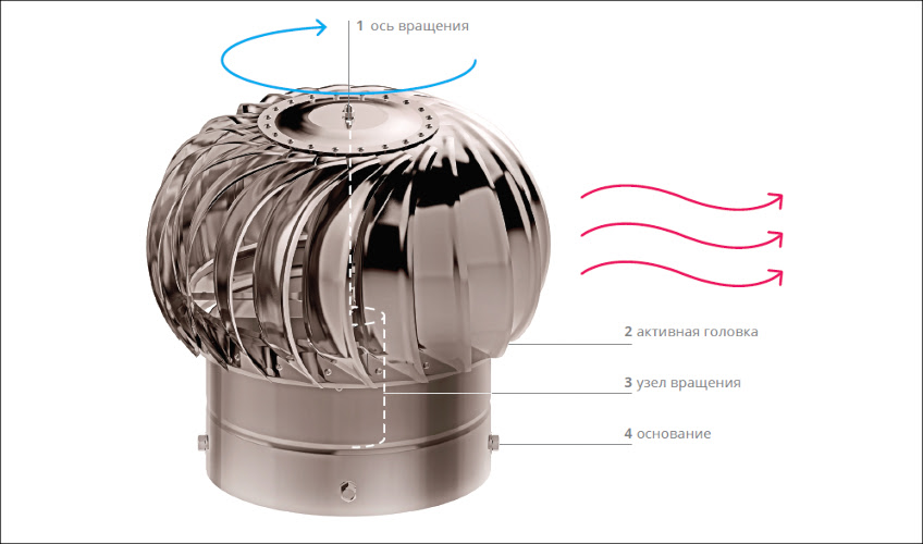 Дефлектор — устройство, которое устанавливается на устье вентиляционной трубы на крыше. Он защищает трубу от ветра и улучшает тягу за счёт создания зоны разрежения.
